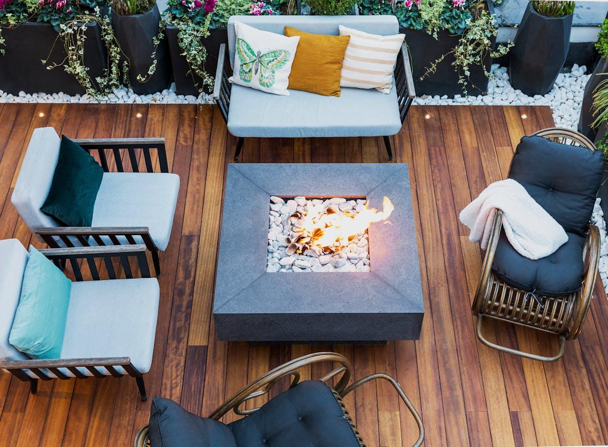 Lemn tratat: aspect natural, cald, elegant. Necesita intretinere anuala (ulei, lac). Alege specii rezistente, cum sunt teak, acacia, eucalipt, nu lemn moale netrat.